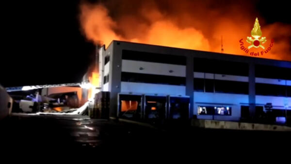 Brucia capannone, vigili del fuoco all'opera da ore per spegnere le fiamme