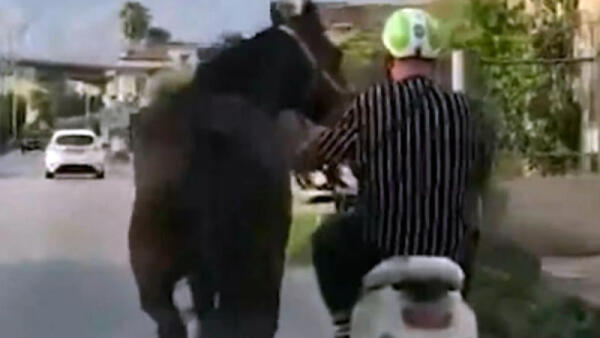 Cavallo trainato da uno scooter