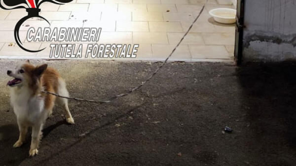 Cagnolino trovato legato al buio in un box auto