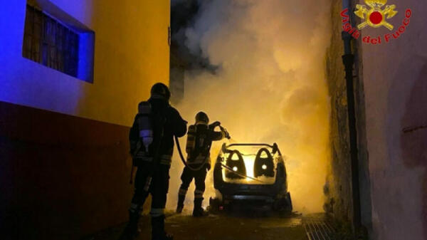 Auto in fiamme, inferno di fumo nella casa di due anziani
