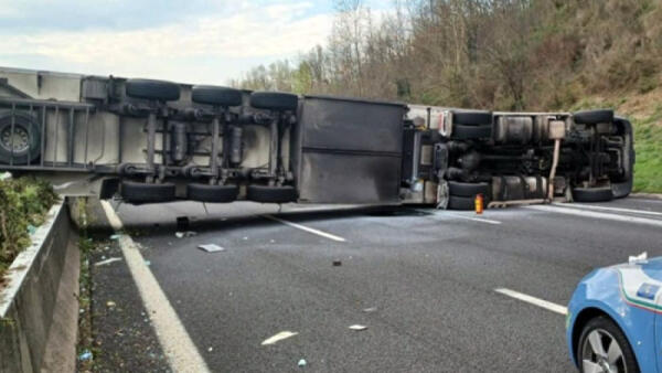Tir si ribalta sull'autostrada verso Napoli