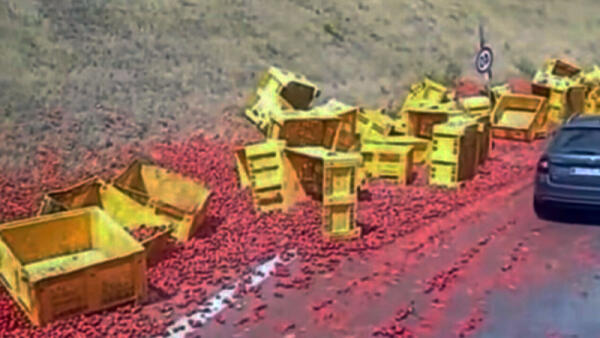 Tir si ribalta, carico di pomodori finisce sull'asfalto del Raccordo