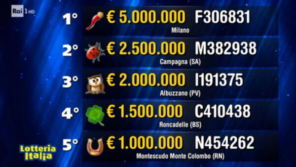 Lotteria Italia: 2,5 milioni in Campania. A Ottaviano uno dei premi da 100mila euro