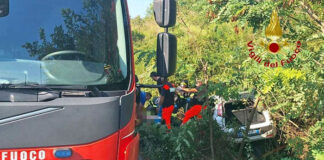 Auto esce di strada, coppia finisce nella scarpata