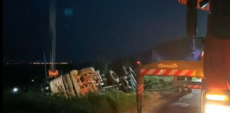 Camion si ribalta sulla cunetta