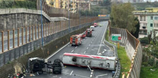 Cisterna di carburante si ribalta sulla Tangenziale