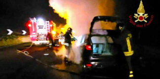 Intera famiglia a bordo, auto in fiamme sull’A16