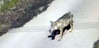 Lupi immortalati nel centro abitato dalle telecamere