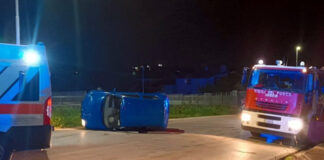 Auto ribaltata e conducente intrappolato