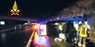 Auto si ribalta sulla Nazionale