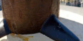 La nuova opera in piazza subito coperta da un lancio di...