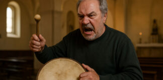 Infastidito dalle campane, va a suonare il tamburo in chiesa durante...